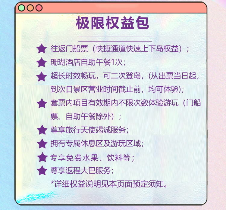 海岛快闪套票(不含门船票) 查看详情 | - | 起 | 预订 |